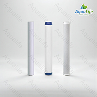 2) 20'' BLOCK CARBON - содержит прессованный уголь в форме брикетов, обеспечивающий более плотный фильтрующий слой. Эффективно удаляет хлор, органические соединения и запахи, предотвращая быстрый проход воды через фильтр и поддерживая стабильную степень очистки на протяжении всего срока службы картриджа.