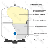 Внешняя поверхность бака выполнена из стали и защищена высокотемпературным порошковым покрытием от коррозии, внутренняя поверхность — из специального полипропилена. Все участки бака, контактирующие с водой, выполнены из нержавеющей стали, что обеспечивает долговечность и безопасность использования.